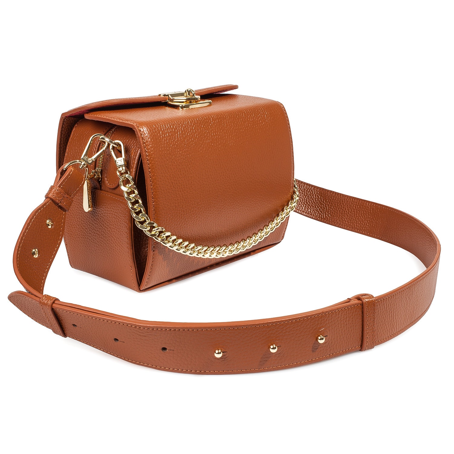 Ginger genuine leather handbag from Ukrainian designer Katerina Fox. This model is designed for women who appreciate the sleek design combined with functionality and comfort. High-quality and reliable hardware ensures long service bags. The internal space of a bag is equipped with three spacious compartments and one patch pocket. The bag is closed with a clasp. The bottom of the bag is protected with metal legs. There is a long handle that allows you to wear the bag on the shoulder. The kit also includes a storage bag.