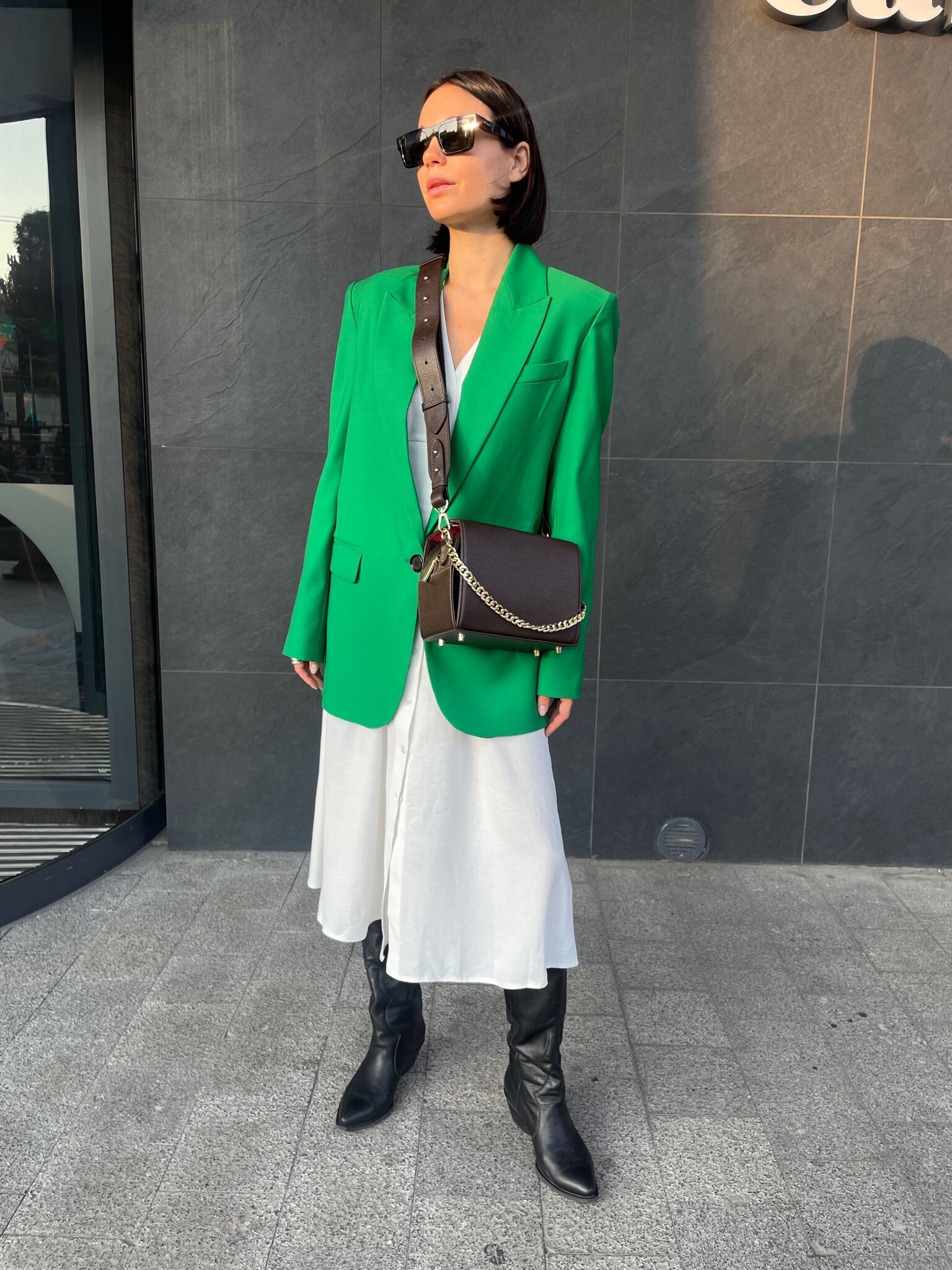 Parameters: length on the bottom 21,5cm (centered 24cm), height 18cm, width 12cm, shoulder strap 108-120cm