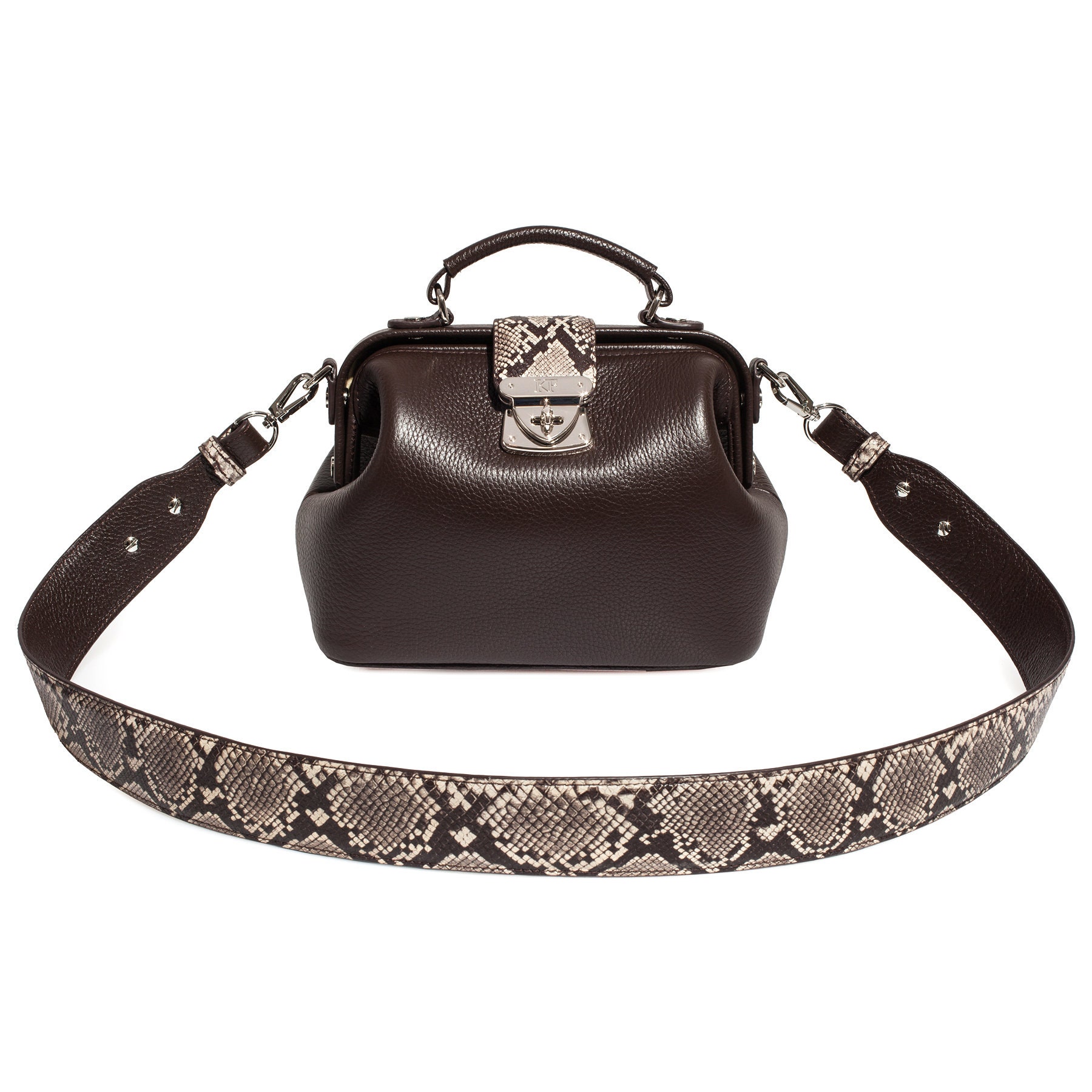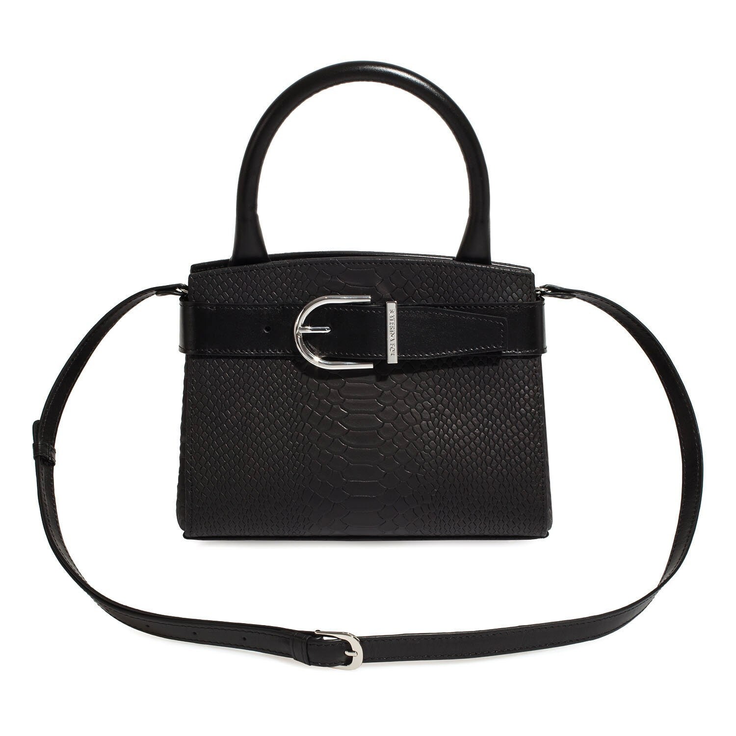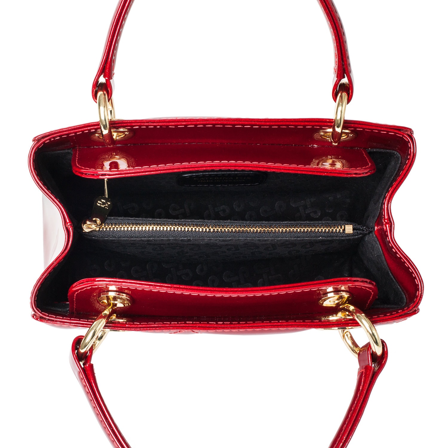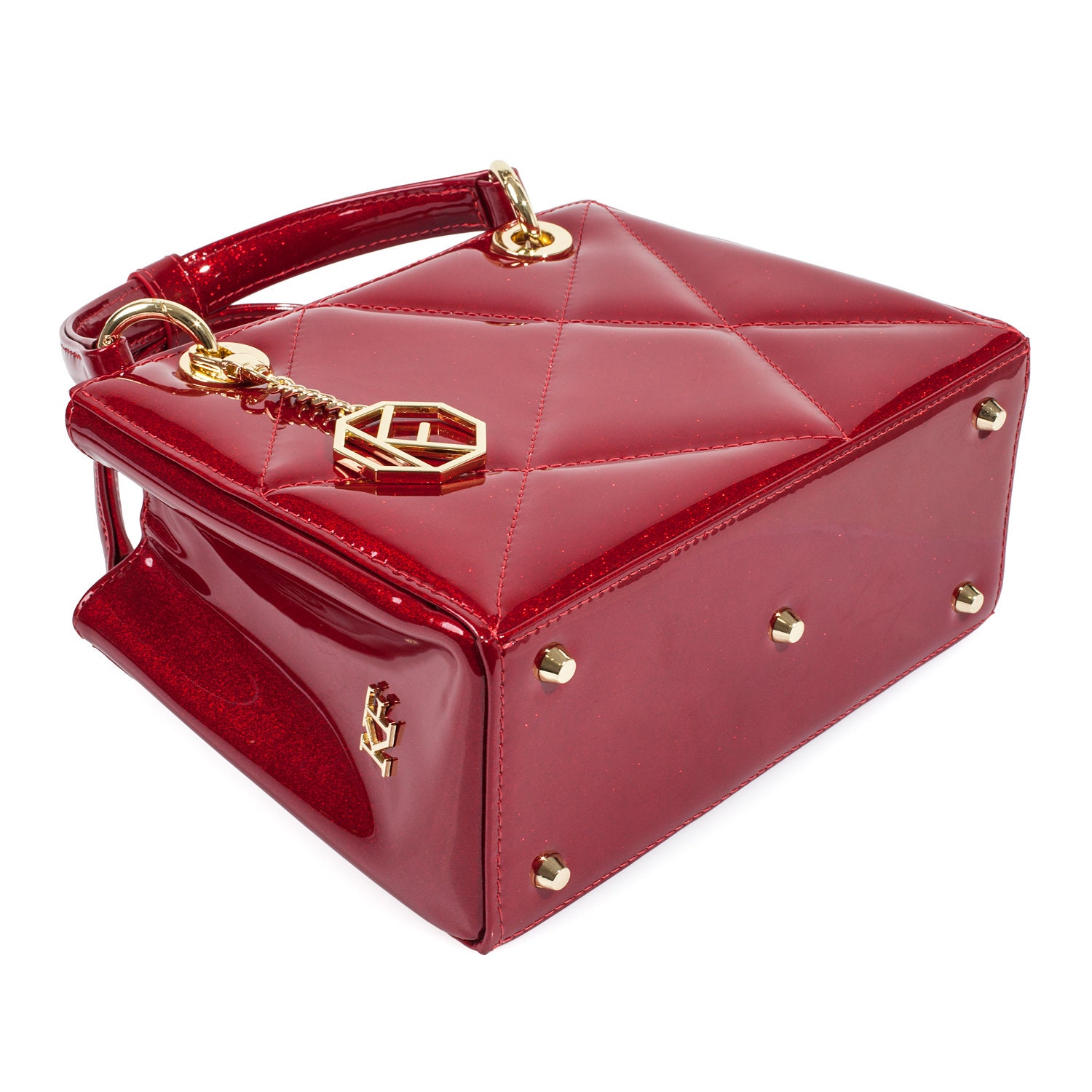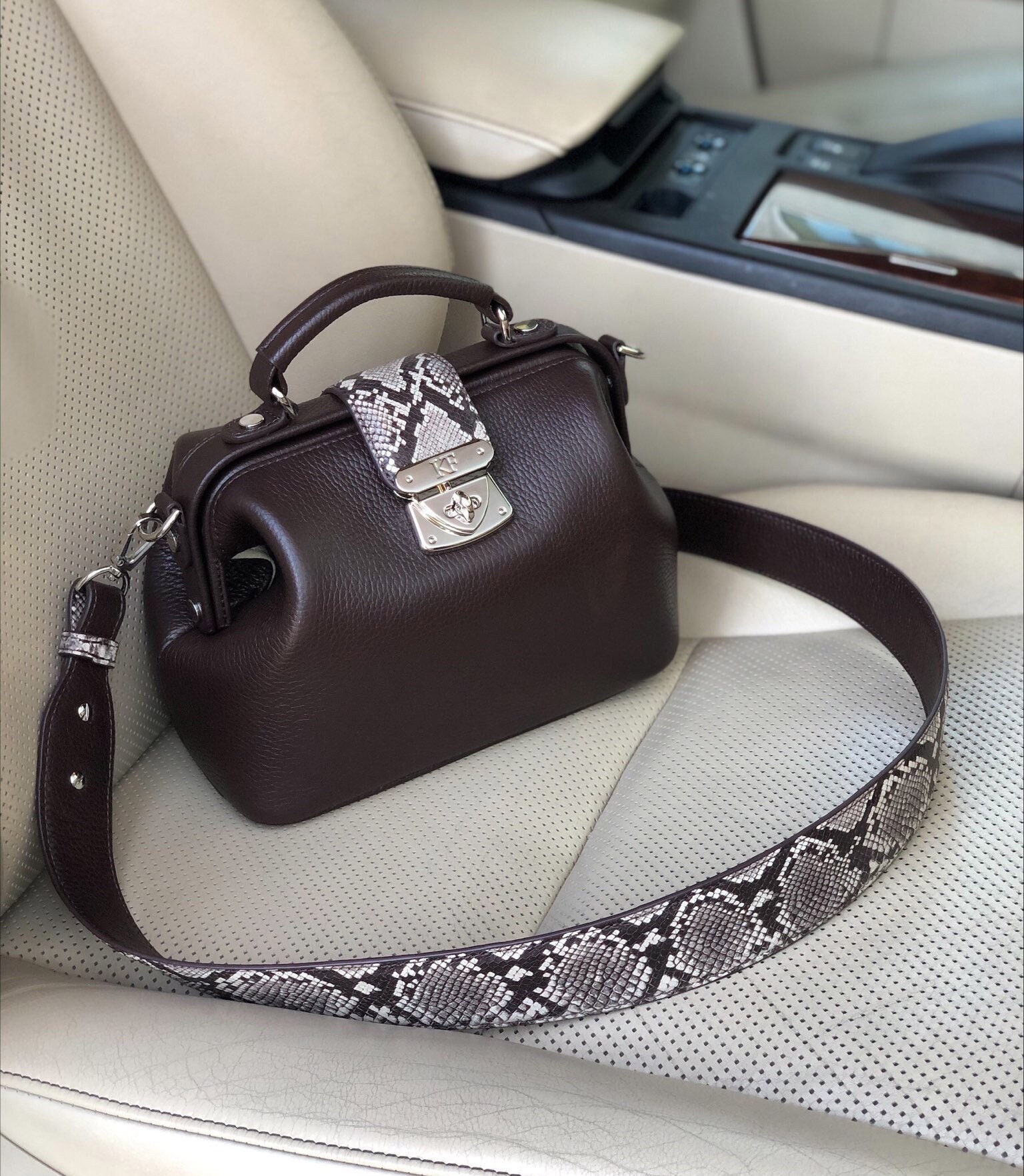 Women's leather bag made of genuine leather, hardware with galvanic coating and microfiber lining. The internal space of a bag is equipped with three spacious compartments and two patch-pockets and one zipper pocket. Closes with 2 buttons magnet. The bottom of the bag is protected with metal legs. The kit also includes a storage bag.